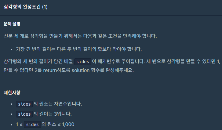 [Programmers] 자바 삼각형의 완성 조건 본문