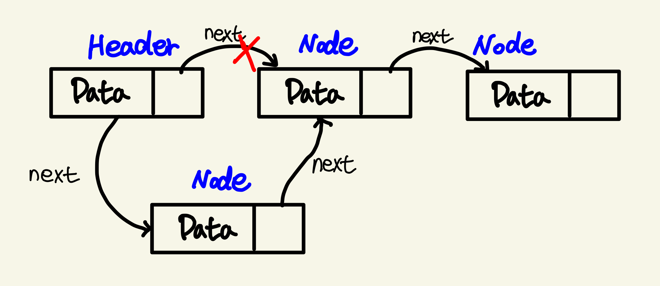 - 싱글 연결 리스트: next 포인터만 가집니다.