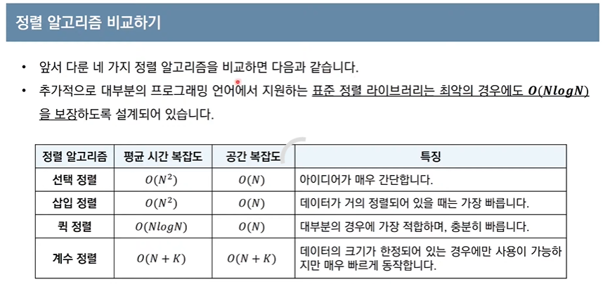 일반적으로 문제 상황에 따라서 적절한 정렬 알고리즘이 공식처럼 사용됩니다.