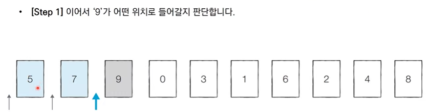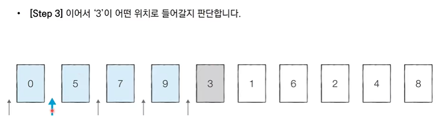 처리되지 않은 데이터를 하나씩 골라 적절한 위치에 삽입