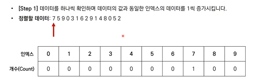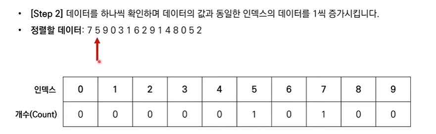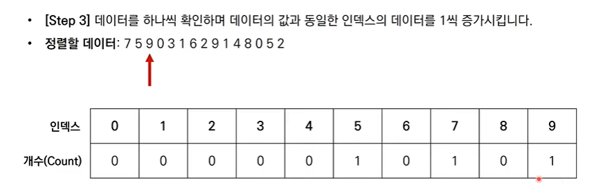 cnt[arr[i]] += 1; // 각 데이터에 해당하는 인덱스의 값 증가