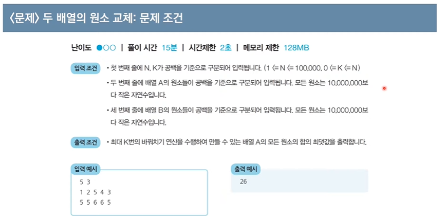 // 첫 번째 인덱스부터 확인하며, 두 배열의 원소를 최대 K번 비교