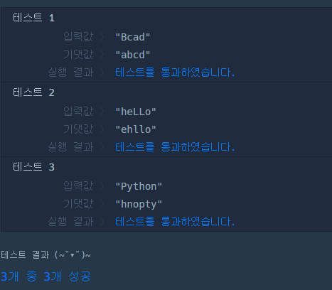 - 변환한 strchar 오름차순으로 정렬 a= 97, b= 98, ....