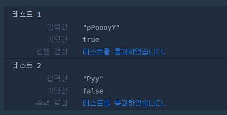 예를 들어 s가 "pPoooyY"면 true를 return하고 "Pyy"라면 false를 return합니다.