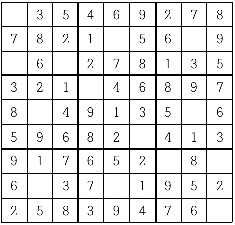 스도쿠 판을 채우는 방법이 여럿인 경우는 그 중 하나만을 출력한다.