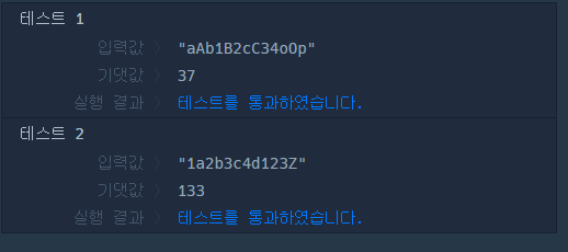 | "aAb1B2cC34oOp" | 37 |