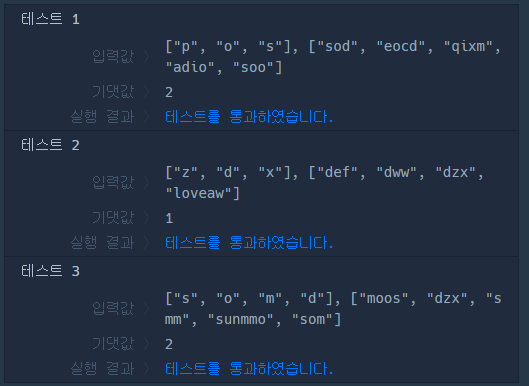 - spell과 dic의 원소는 알파벳 소문자로만 이루어져있습니다.