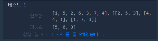 배열 array, [i, j, k]를 원소로 가진 2차원 배열 commands가 매개변수로 주어질 때, commands의 모든 원소에 대해 앞서 설명한 연산을 적용했을 때 나온 결과를 배열에 담아 return 하도록 solution 함수를 작성해주세요.